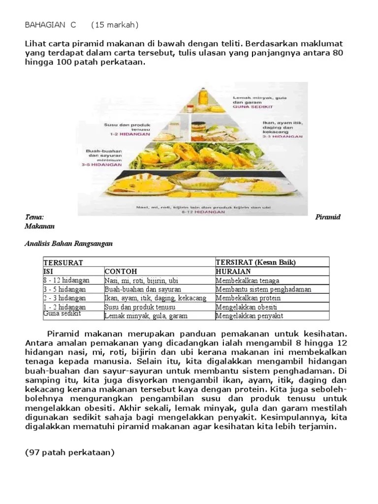Piramid makanan menjadi panduan pemakanan . Contoh ulasan 1 gambar di bawah menunjukkan poster piramid makanan tulis ulasan . Subjek bahasa melayu tahun enam latihan sritsat education.